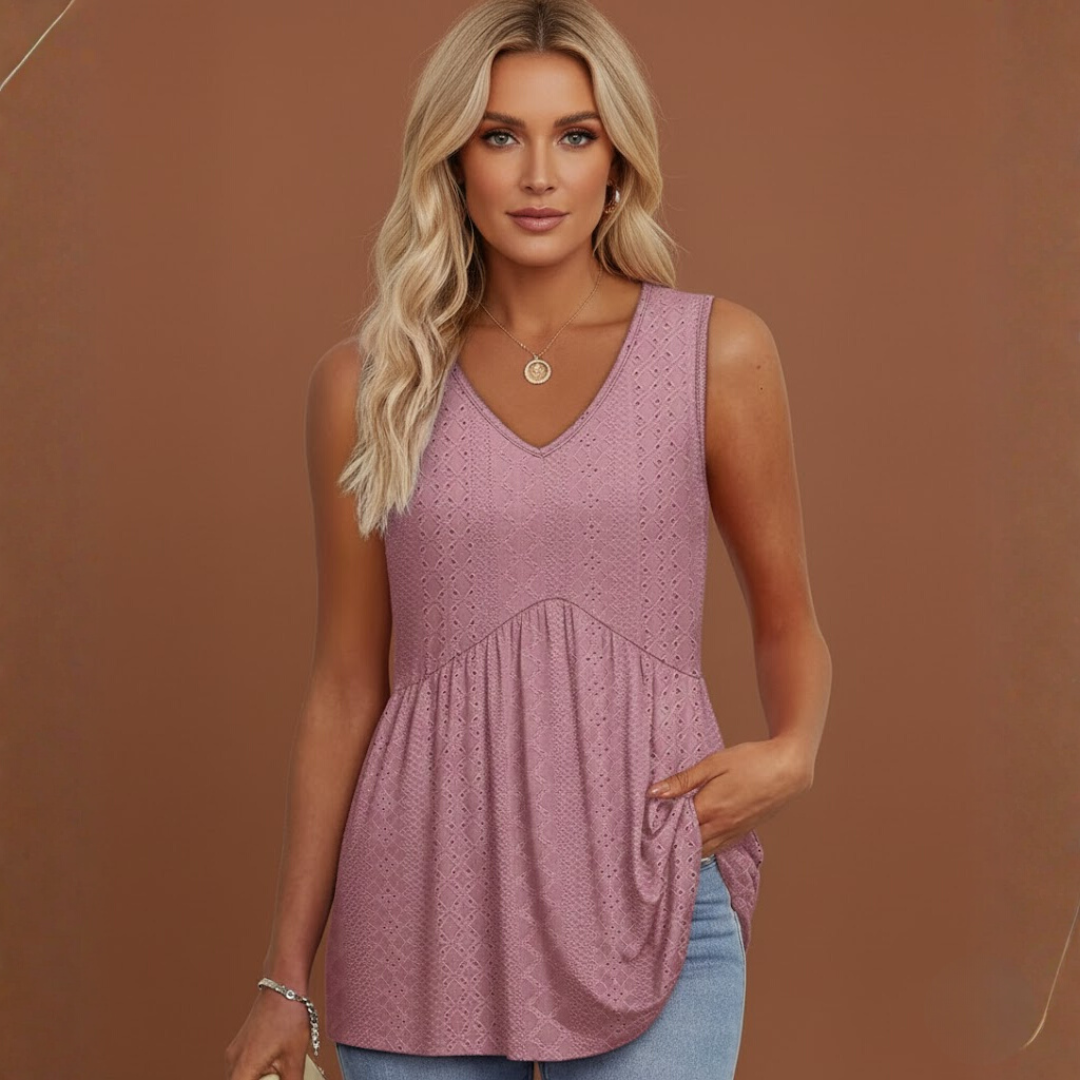 Julie | Haut sans manches à col en V et taille froncée pour femme